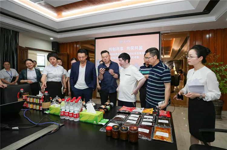 汪董一行抵达美乐公司后,先参观了富顺香辣酱文化历史展馆、公司省级企业技术中心和生产车间,了解了公司的发展历程、生产经营情况等,随后进行了合作座谈、产品品试,双方就品牌合作、川菜、川调及调味品产业发展、协会工作思路、服务情况、OEM合作和资源整合等方面进行了深度交流。汪小菲先生在餐饮和时尚美食届具有很深的造诣,对美食和餐调融合有丰富经验,此次美乐商务考察将为下一步双方的深度合作奠定良好的基础。