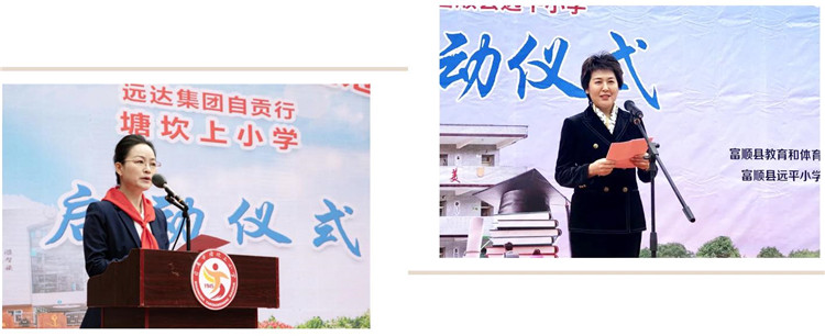 在富顺县远平小学和自流井区塘坎上小学的启动仪式上,中共自贡市委常委、自贡市人民政府副市长王磊,自贡市人民政府副市长黄劲分别致辞,对星能公益基金会的到来表示欢迎和感谢。