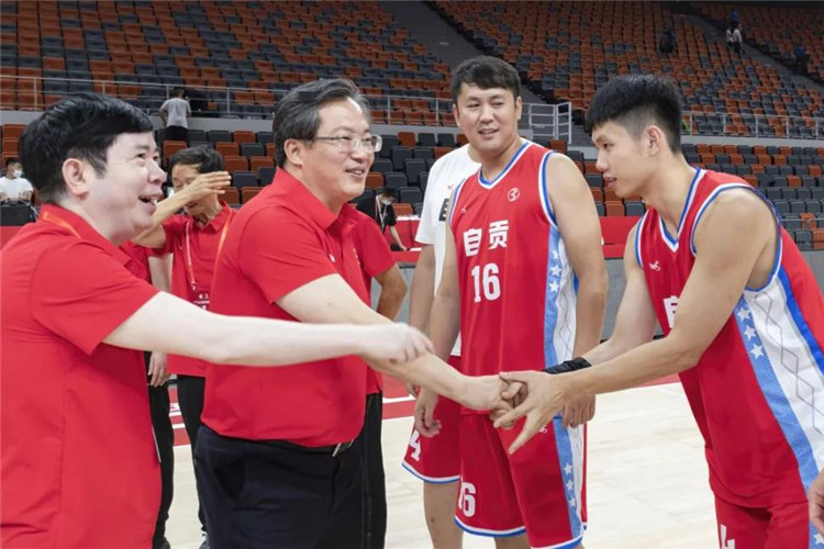 中共自贡市委书记范波看望参加“三大球”联赛的市男篮队伍