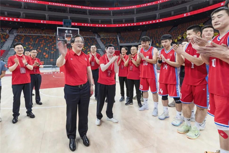 范波书记同自贡男篮全体教练员和球员合影