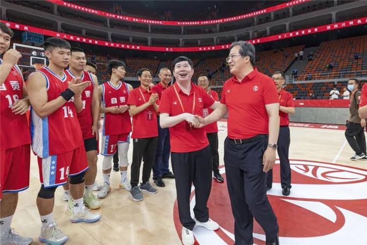 6月22日晚,2022年“体总杯”三大球中国城市联赛选拔赛暨三大球四川城市联赛开幕式在成都凤凰山体育公园综合体育馆盛大举行,揭幕战由自贡男篮对阵眉山男篮,经过激烈的角逐,自贡男篮以75∶61战胜对手,赢取开门红。赛后,受邀观看联赛揭幕战的中共自贡市委书记范波看望了自贡男篮全体教练员、球员和到场观赛的球迷。自贡市人民政府副市长陈张铭陪同看望。