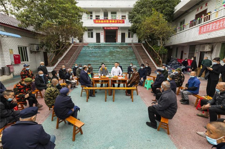 初冬的盐都寒意渐浓,富顺县琵琶镇敬老院里的老人们围坐在一起,尽情享受这静谧美好的时光,大家终于盼到这一天和那个人的到来。欢笑声从院子里飘散开来,平日里稍显冷清的敬老院格外热闹,而他的到来,似三春暖阳般洒向大地,温暖了每一个角落。